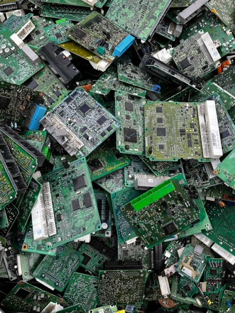 それではたくさん仕分けしたあとの異物付き基板の解体作業に
